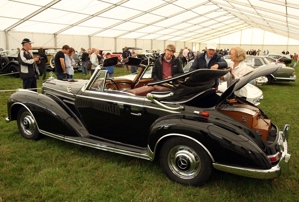 Colin and Fay Hampson’s beautiful Suffolk Jaguar SS 100 looked magnificent in its steel grey paint which contrasted with the more flamboyant Florida green over white colour scheme of John Smith’s Austin Healey 100 – which also won the Peoples’ Choice Award on the day before at Beaulieu’s Simply Classics show.