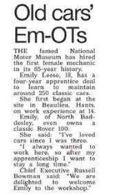 “Ever since Emily first visited us for work experience four years ago, I have been impressed by her enthusiasm and determination. I was the last apprentice to complete my training here at the National Motor Museum 40 years ago, so it makes me exceptionally proud to offer this opportunity to a new recruit by employing Emily as our apprentice in the workshop. It has been a long process to make that happen but with the help of our sponsors, the Federation of British Historic Vehicle Clubs and many others, we can move a huge step forward in ensuring our legacy of knowledge is safe for the future.”