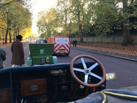 ”Our first glimpse of what was to come on Sunday started on Saturday afternoon. We wandered up Regent Street and saw about 100 veteran cars, at this time we had no idea this was just the concours and that on Sunday there would be some 400 cars taking part in the event. Looking at the cars all I thought was this is probably going to be a cold and bumpy ride!!