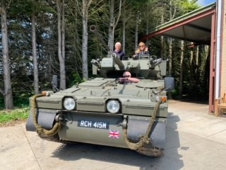 We usually have an eclectic mix of items to bid on at our Annual Dinner & Auction, and way back in 2019, Mike Timmins was successful in bidding for one of them. A Ride in a Tank!