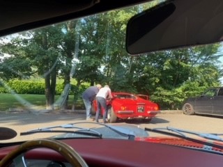 I was disappointed when Jim said that unfortunately the Dino’s battery wasn’t holding charge so we could use any of the cars to go to lunch with the exception of the pocket rocket. Just a few minutes later with a chuckle he told me that the keys were in the 246 and Lindsey and I should follow him & Vero to the pub (which turned out to be a beautiful restaurant). We followed them in glorious sunshine down gorgeous country lanes in a car I’d been dreaming about most of my life. The rule is that you should never meet your heroes. Having been warned over the years to prepare for a disappointment I was immediately overwhelmed by the visceral experience of driving the car.