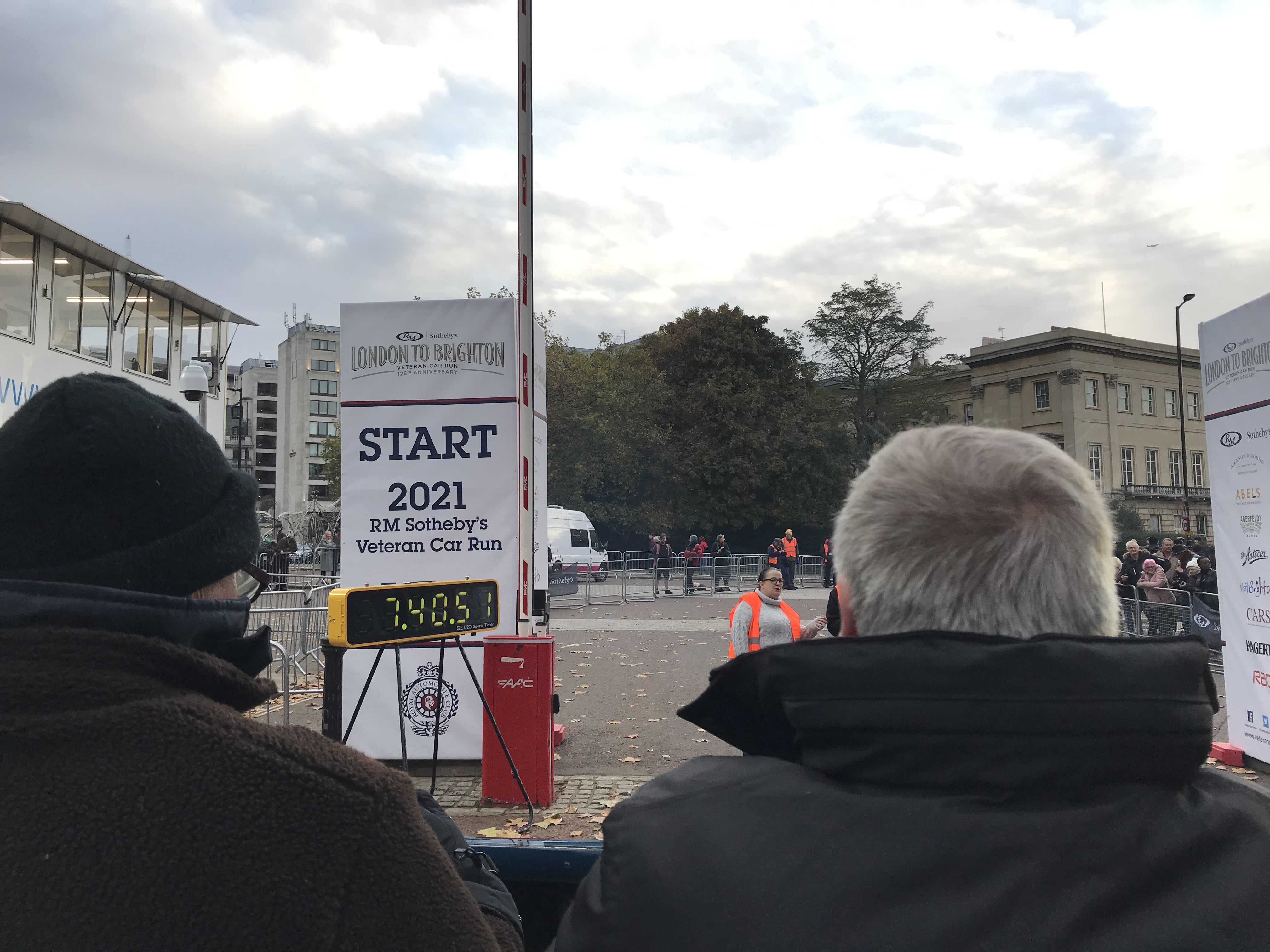 Our start time for the run was set at 07.38 and so there was plenty of time to admire our fellow contestants and soak up the atmosphere. We arrived at Hyde Park in the dark of the early morning, but dawn was breaking as the start time of 07.06 for the first car was reached. Soon, it was our turn to join the small start line queue and we were away at 07.40. With Stan at the wheel, it was down Constitution Hill, through Pall Mall and past Trafalgar Square; already many spectators were up and about to wave us on our way. Soon the routes split into two to alleviate traffic in London and our route led us over Lambeth Bridge, Balham and Mitcham to Croydon where the routes converged once more.