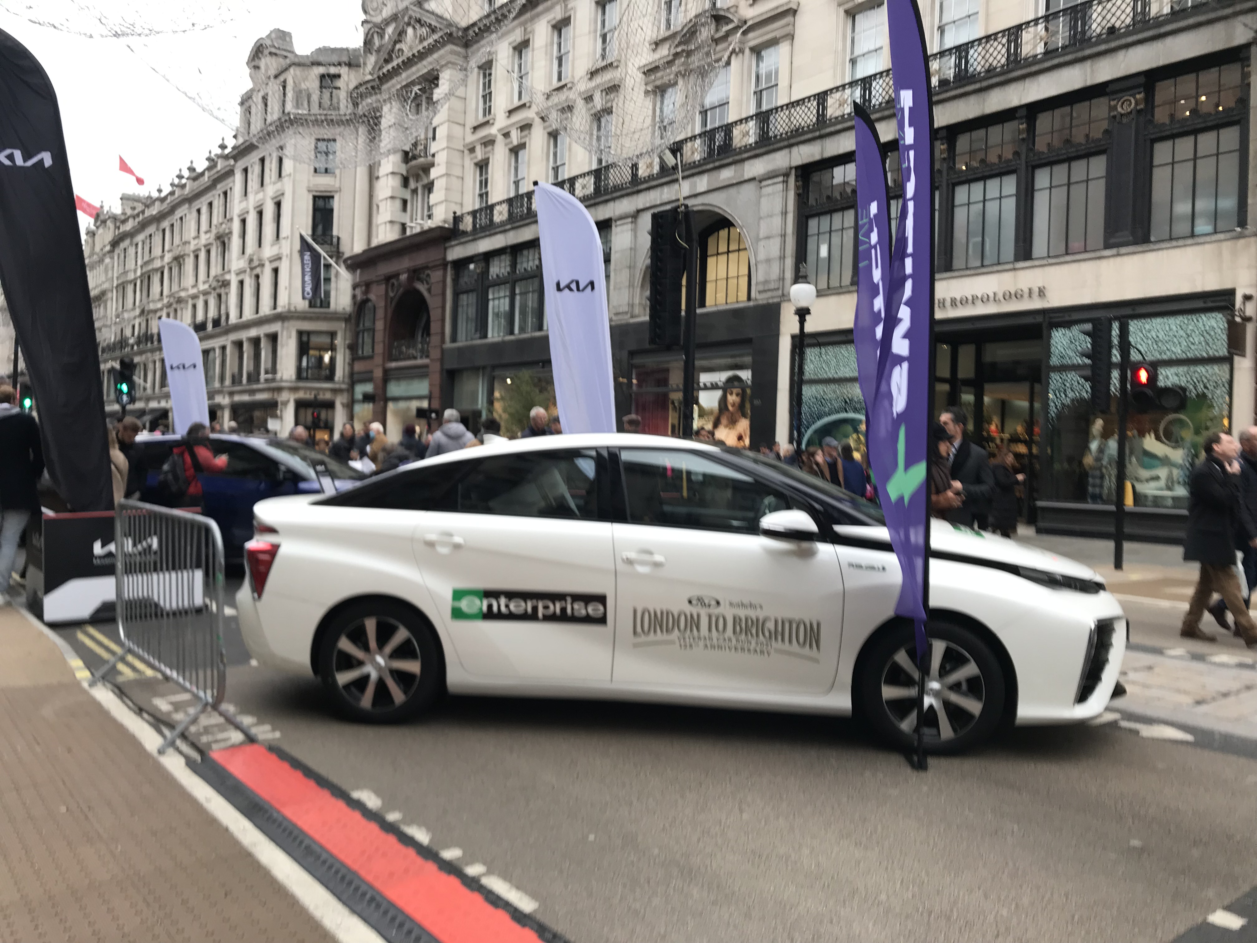 I left home at 9AM on Saturday and so began 32 hours of almost non-stop action. My son, Martin, dropped me at Southampton Central station to catch the 10 AM train to Waterloo. It was 20 minutes late, of course, due to Engineering Works at Redbridge although on Saturday, time was not of the essence. The Regent Street Motor Show is a precursor to the Brighton Run and the opportunity to visit was too good to miss. So, London tube Bakerloo line to Piccadilly Circus and I emerged at the entrance to Regent Street for a Hot Dog lunch.